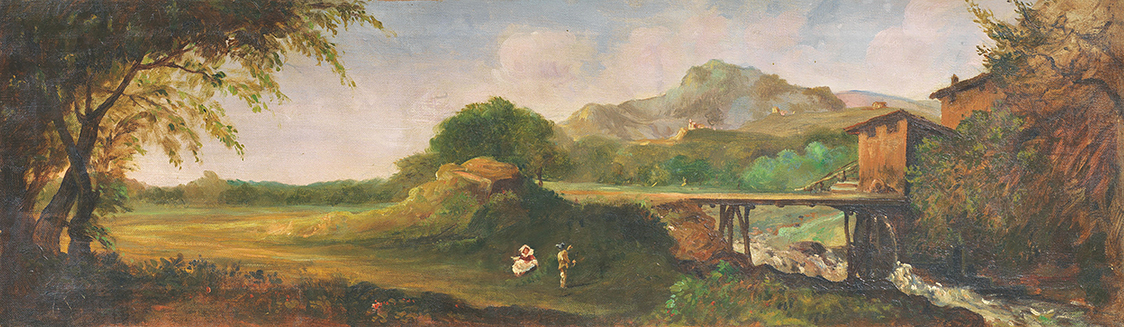 Scuola veneta della fine del XIX secolo COPPIA DI PAESAGGI Olio su tela, cm 27x93