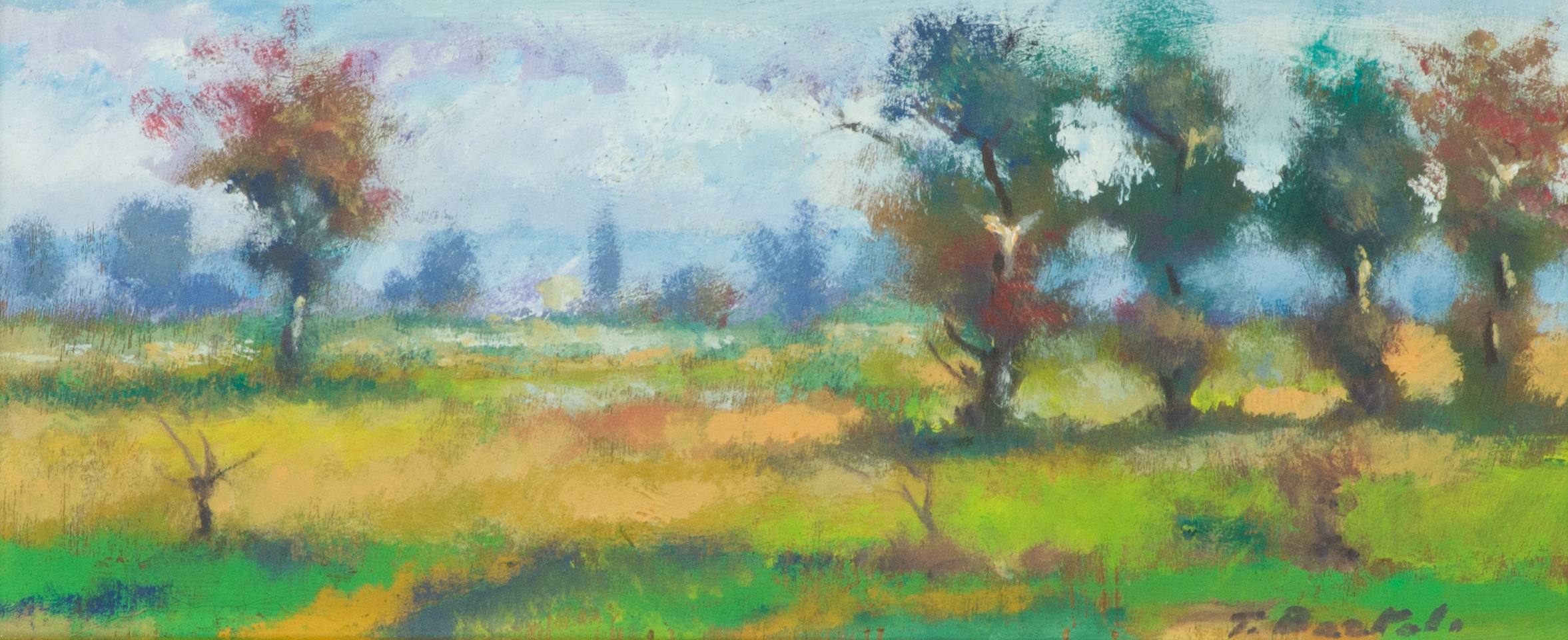 Tullio Bartoli Paesaggio Olio su tavola, cm. 14x31 Firmato in basso a destra.