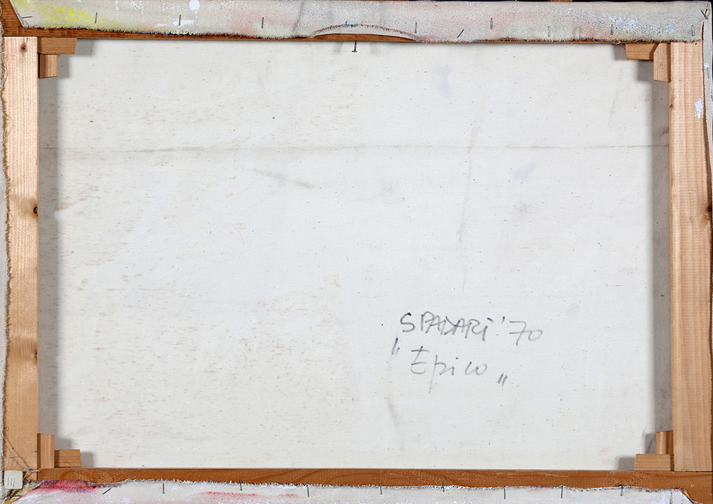 GIANGIACOMO SPADARI 1938 - 1997 Epico, 1970 Tecnica mista su tela, cm. 50 x 70 Firmato e datato sul retro Prov. Collezione Privata