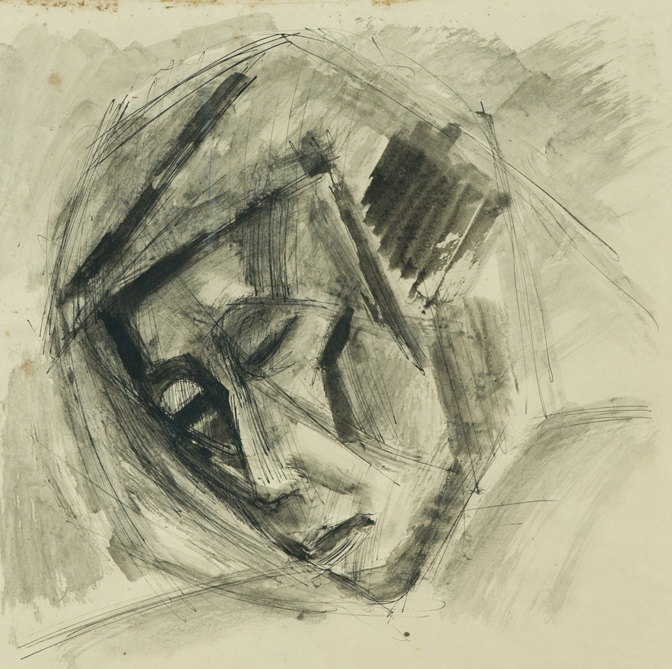 Anonimo del '900 Volto China acquerellata su carta, cm. 34x34