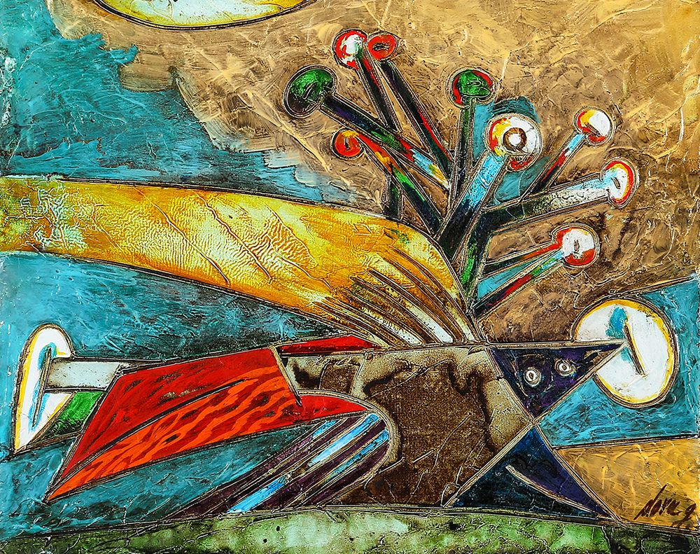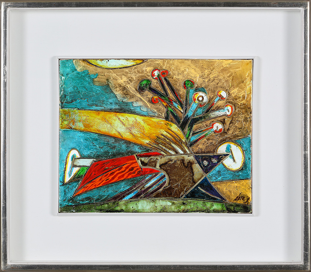 GIANNI DOVA 1925 - 1991 Tra foglie e fiori, anni ’60 Tecnica mista su tela, cm. 23 x 29,5 Firmato in basso a destra Prov. Collezione Privata