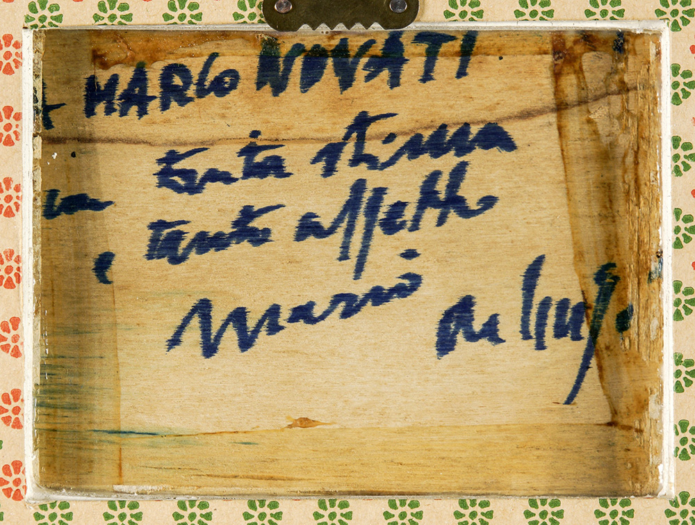 MARIO DELUIGI 1901 - 1978 Senza titolo Grattage su tavola, cm. 10 x 13 Firmato sul retro Dedica dell’artista a Marco Novati sul retro Autentica su fotografia a cura di Caterina De Luigi Prov. Collezione Privata