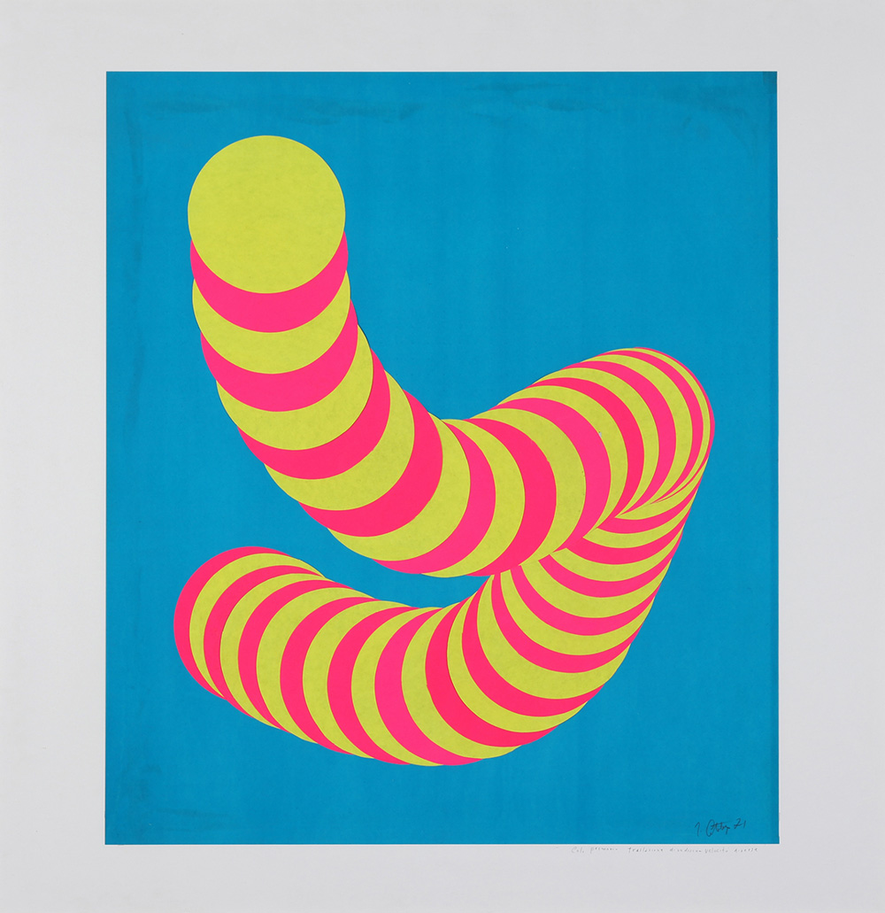 FRANCO COSTALONGA 1933 Col. Primari - Traslazione di un disco - Velocità diverse, 1971 Collage di carte colorate su carta, cm. 70 x 69 (interno cm. 58,5 x 51) Firmato e datato in basso a destra Prov. Collezione Privata