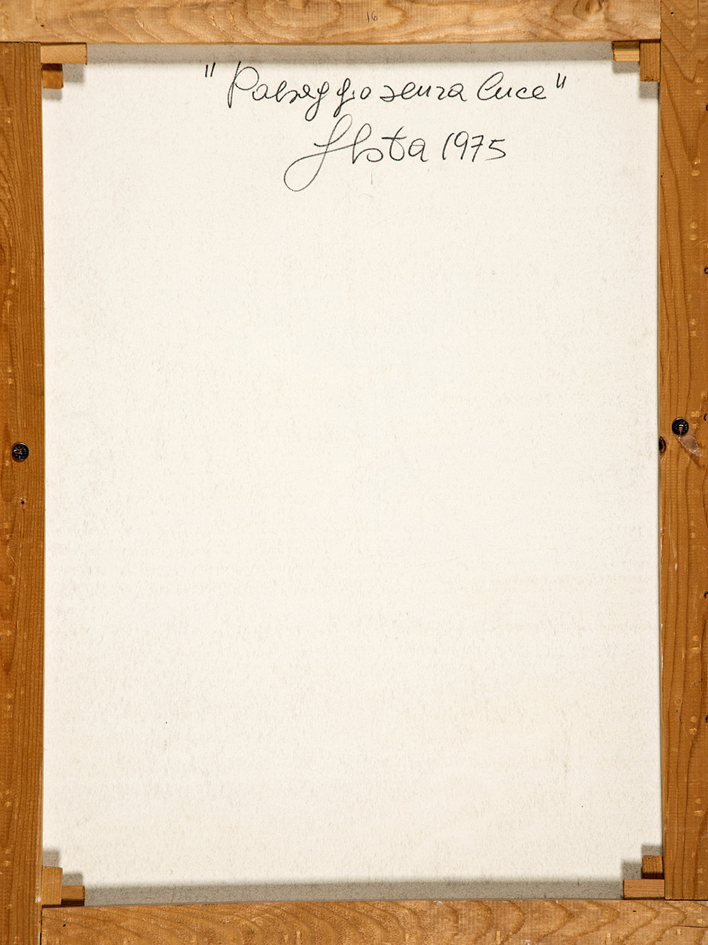 TANO FESTA 1938 - 1988 Paesaggio senza luce, 1975 Tecnica mista su tela, cm. 80 x 60 Firmato e datato sul retro Certificato di Autenticità a cura dell’Archivio delle Opere di Tano Festa, a cura di Anita Festa Prov. Collezione Privata