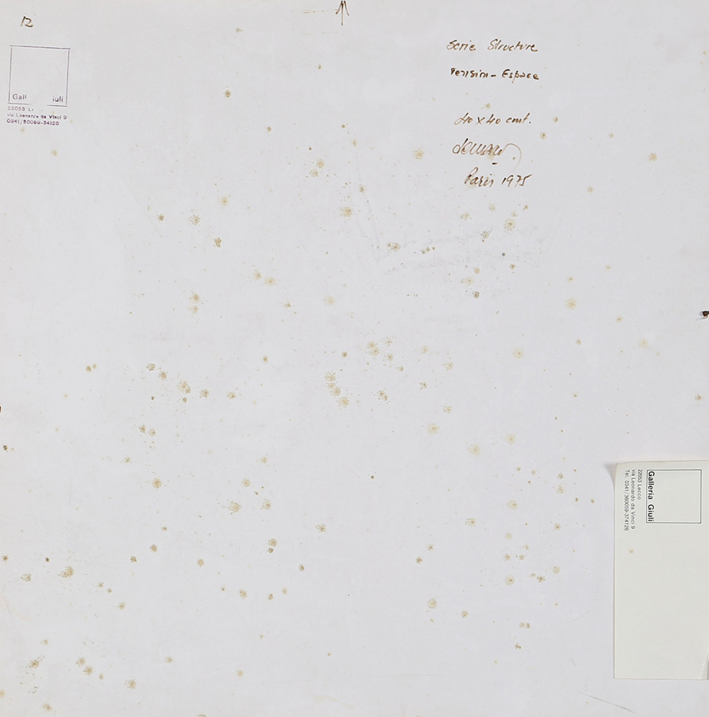 HUGO DEMARCO 1932 - 1995 Serie Structure, Tension - Espace, 1975 Tempera su cartone, cm. 37 x 37 Firmato e datato sul retro Etichetta e timbro Galleria Giuli, Lecco sul retro Prov. Collezione Privata