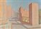 Dino Migliorini Veduta cittadina, anni '70 Olio su cartone telato, cm. 50x70...