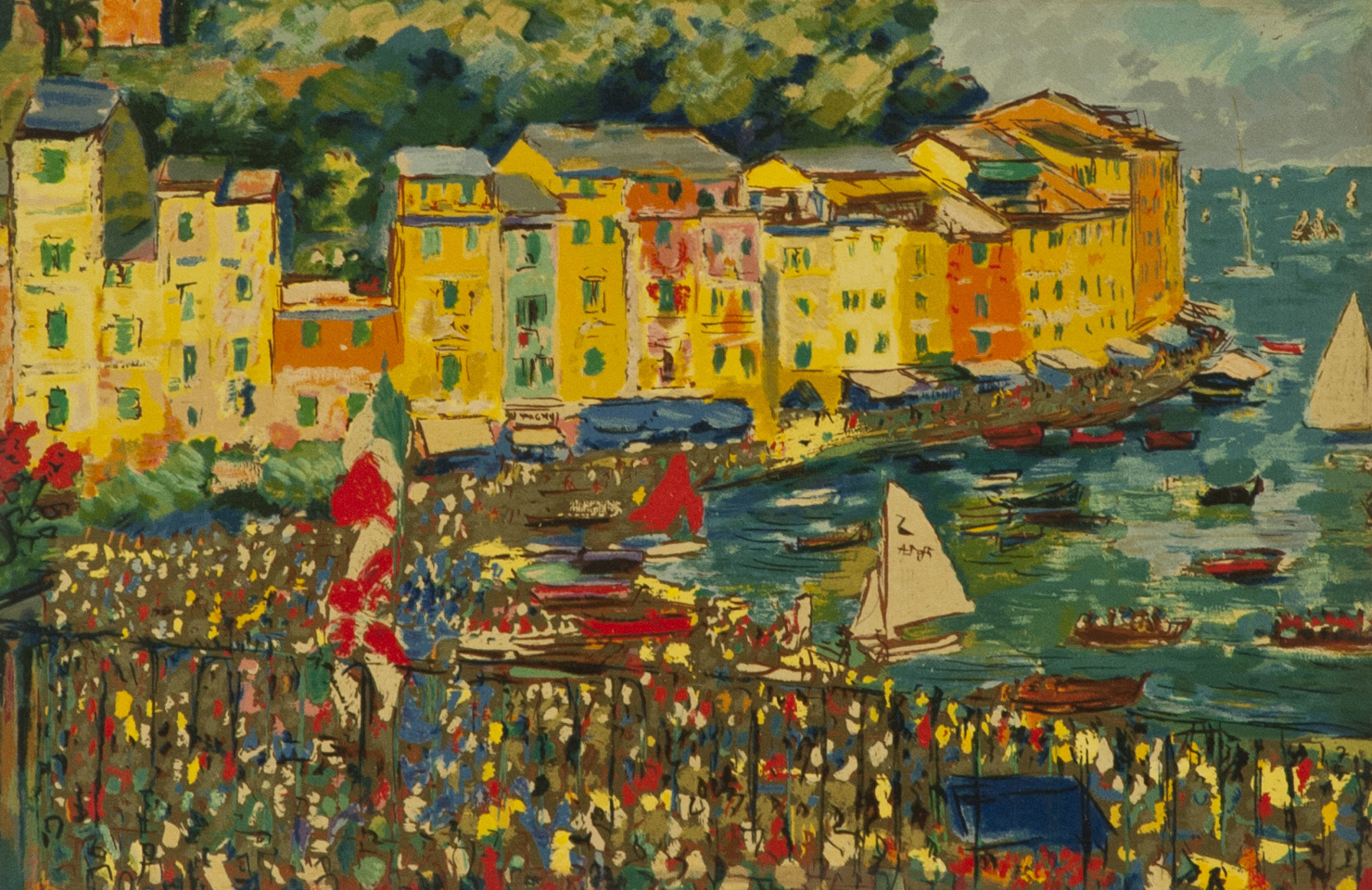Michele Cascella Portofino Serigrafia su argento 800/1000, cm. 24x33, es....
