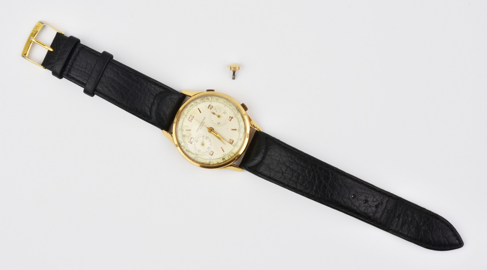 OROLOGIO DA POLSO CON CRONOGRAFO, CHRONOMETRE SUISSE, IN ORO 14 K CASSA: in...