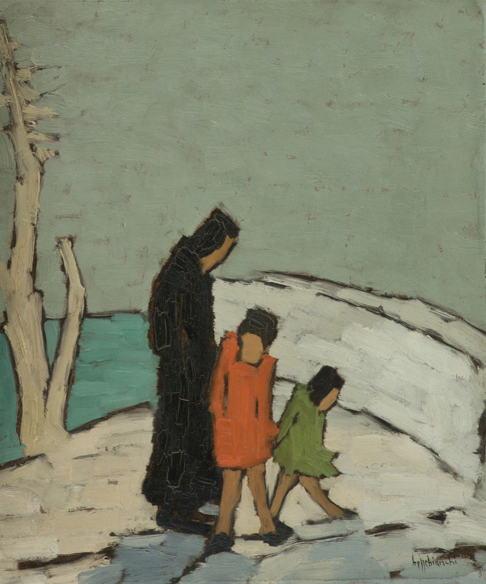 Beppe Bianchi Figure Olio su tavola, cm. 47x40 Firmato in basso a destra.