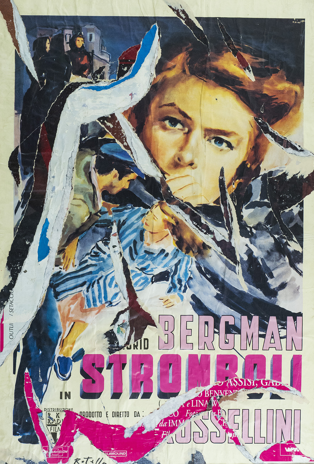 Mimmo Rotella (Catanzaro 1918 Milano 2006) Sromboli 2000, Decollage su tela, cm. 100x69., Firmato in basso a sinistra. Sul verso: titolo e data. Autentica della "Fondazione Mimmo Rotella" su foto con Archivio n° 0990 DC 000/000.