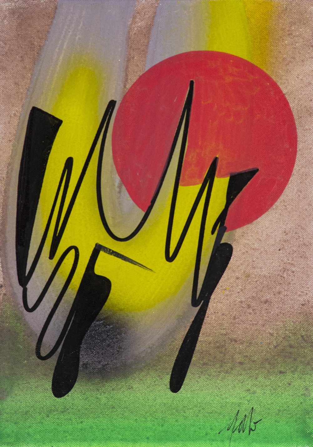 Sergio Dangelo (Milano 1932 ) Tensione in alba , Olio e tecnica mista su tela, cm. 18x13,5., Firmato in basso a destra. Sul verso: firma e titolo.