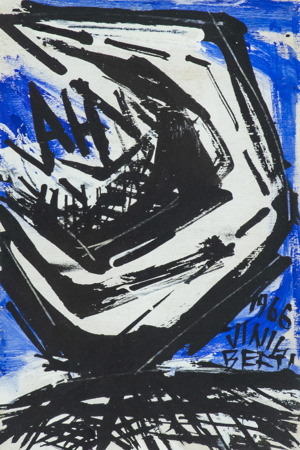 Vinicio Berti (Firenze 1921 1991) Emblema AH 1966, Tempera sintetica su tavola, cm. 22x15., Firma e data in basso a destra. Sul verso: firma, data, titolo e scritto di Autenticità dell'Artista. Timbro: "Vannucchi Arte", Prato. Autentica di "Liberia Maria Pini" su foto;