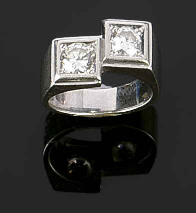 ANELLO Anello in oro bianco con due diamanti taglio brillante rotondo per complessivi ct 1,25 ca Peso gr. 14 Misura 13,5