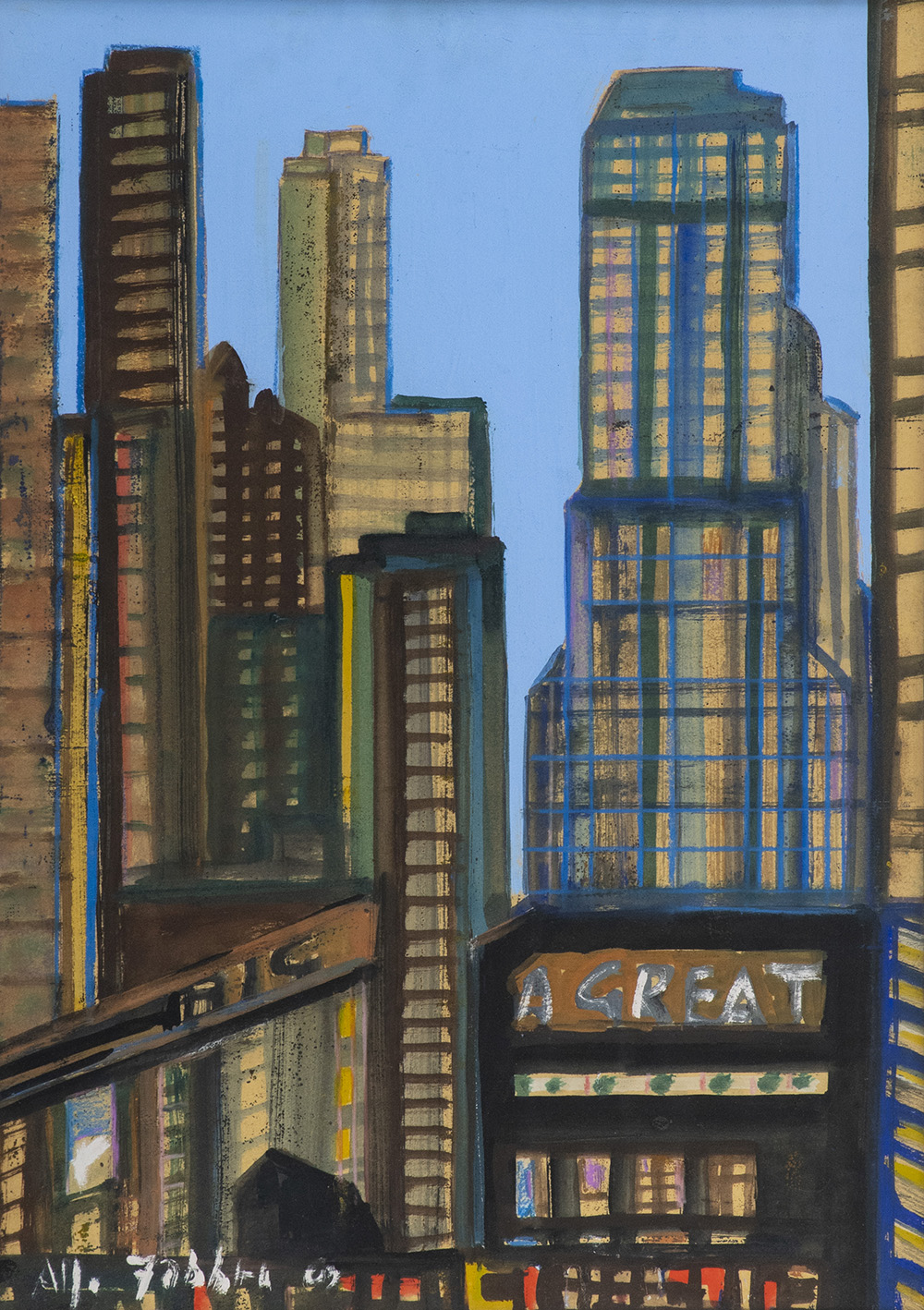 Alfredo Fabbri (Grosseto 1926 2010) New York 1963 Olio su tavola, cm. 70x50., Firma e data in basso a destra.
