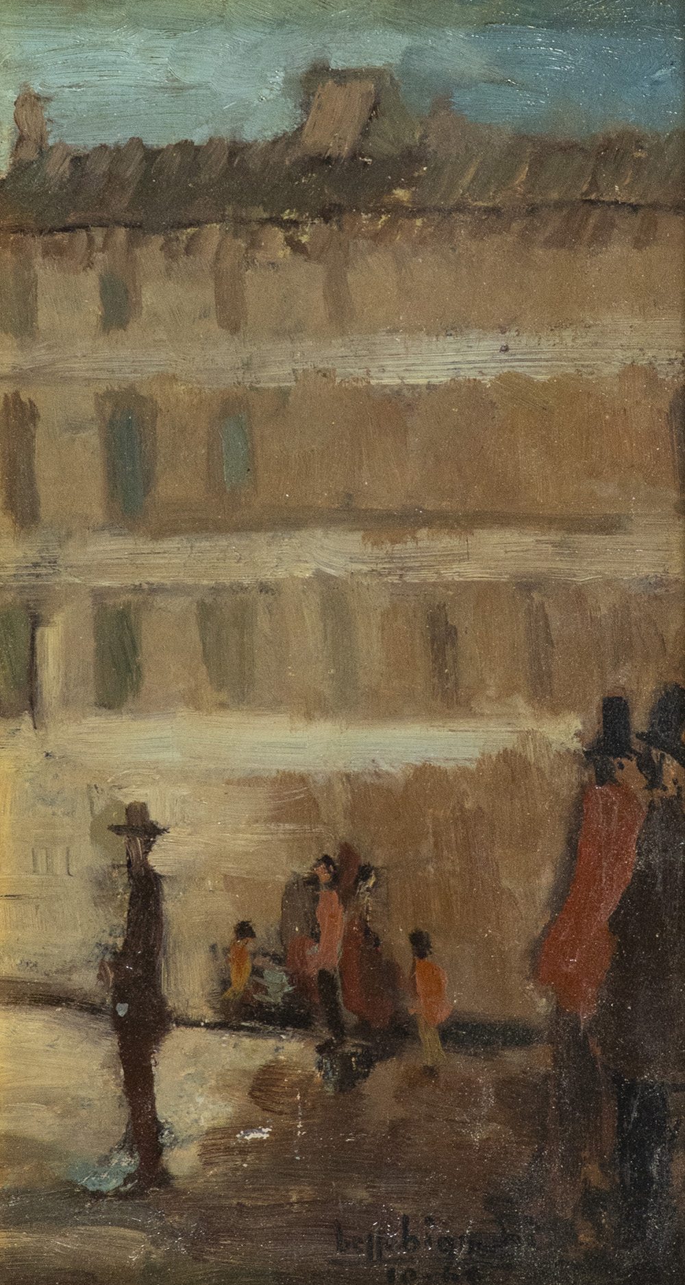 Beppe Bianchi (Firenze 1910 ) Piazza 1946 Olio su cartone, cm. 32x18,5., Firma e data in basso a destra. Sul verso: Sigla "Bruno Gilardi", Livorno