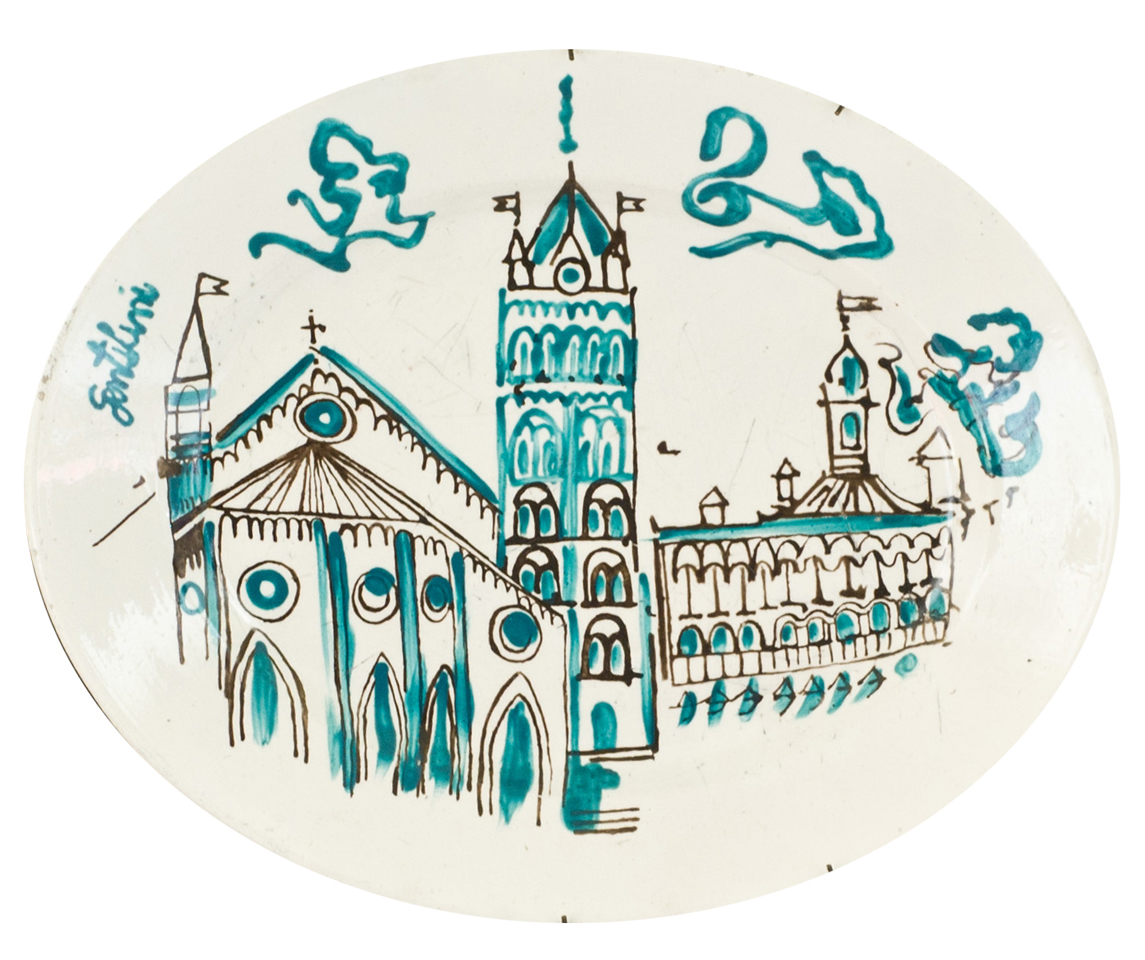 Franco Gentilini Piatto Multiplo in porcellana, cm. 27x34 Firmato sul lato...