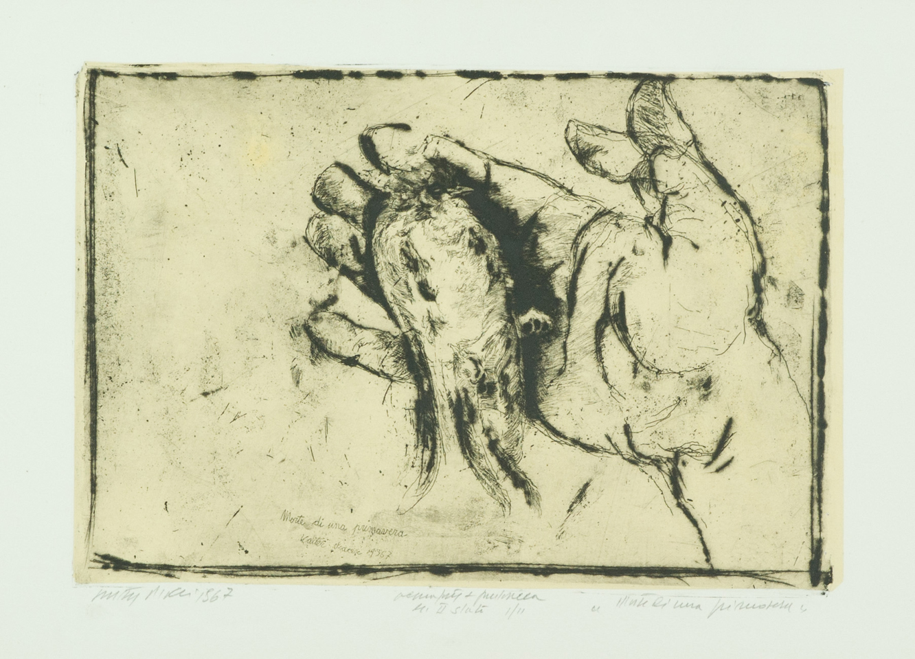 Walter Piacesi Morte di una Primavera, 1967 Acquaforte di cm. 23x34, su carta di cm. 30x42, es. 1/2 in secondo stato Firma e data in basso a sinistra, titolo in basso a destra, tiratura in basso al centro.