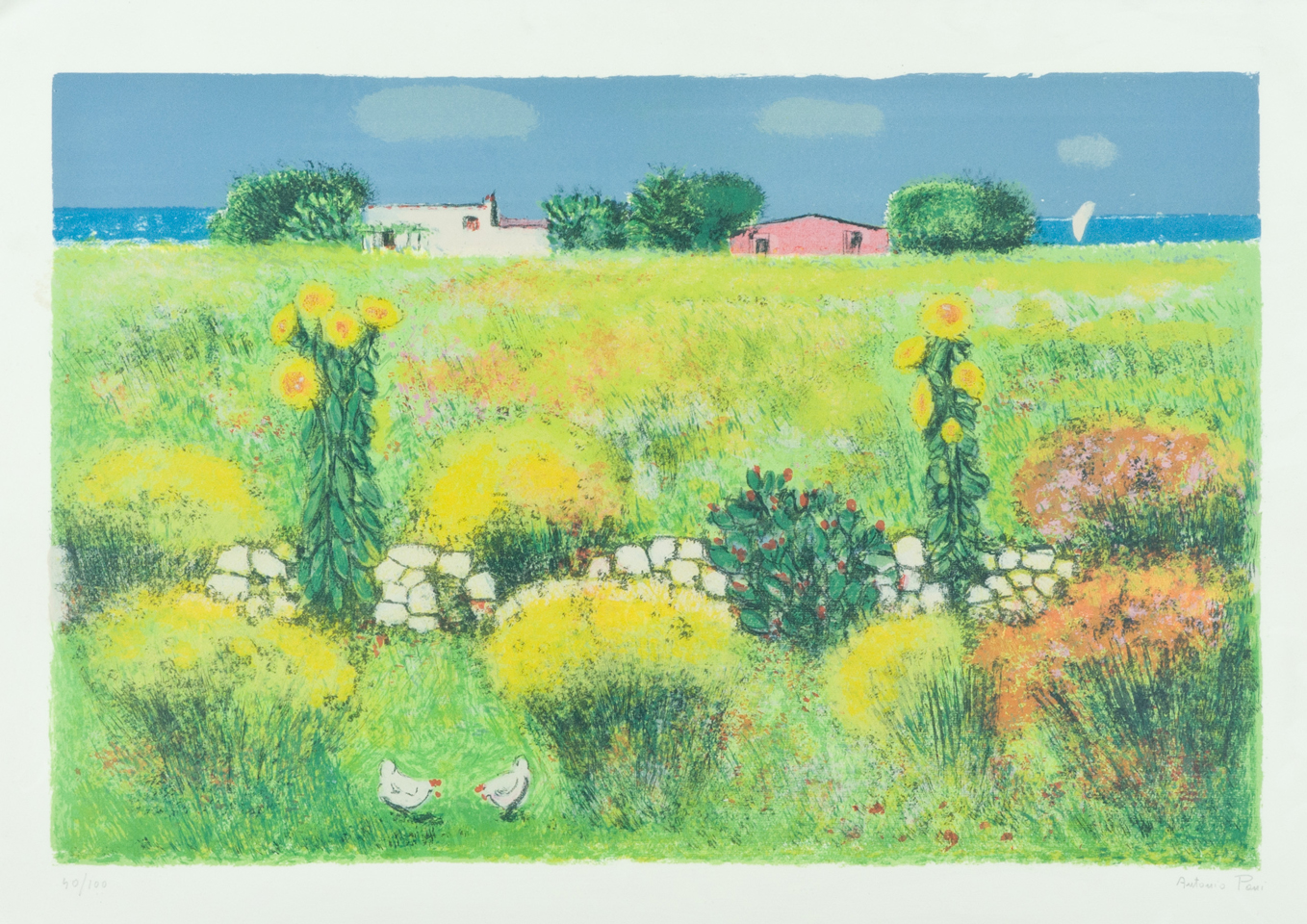 Antonio Pani Paesaggio marino Litografia su carta, cm. 50x70, es. 40/100 Firma in basso a destra, tiratura in basso a sinistra.