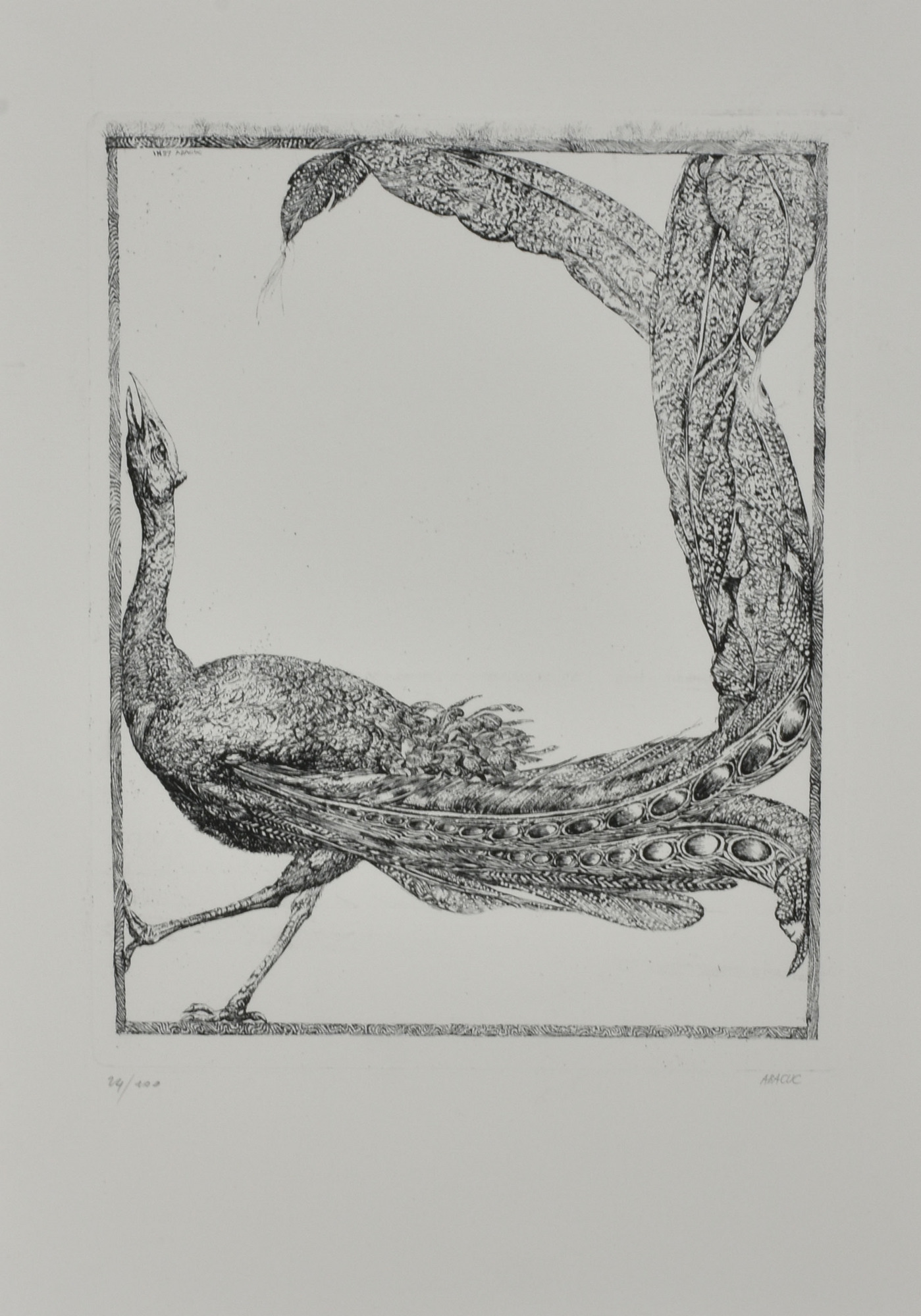 Abacuc IL PAVONE incisione su carta, cm 50x35 (lastra cm 31x25) esemplare 24 su 100 sul fronte: firma