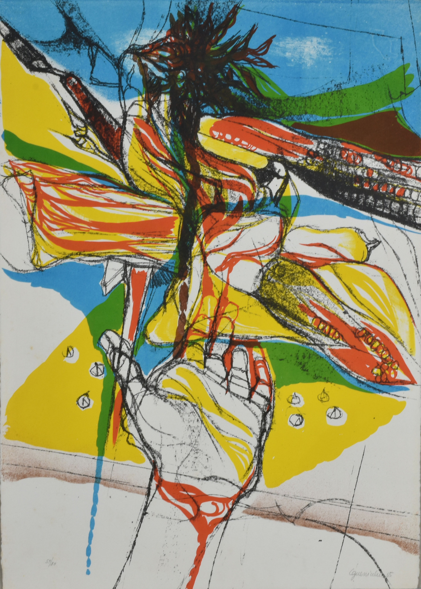Luigi Guerricchio PANNOCCHIE litografia su carta, cm 65x46 esemplare 59 su 80 sul fronte: firma e data eseguito nel 1965