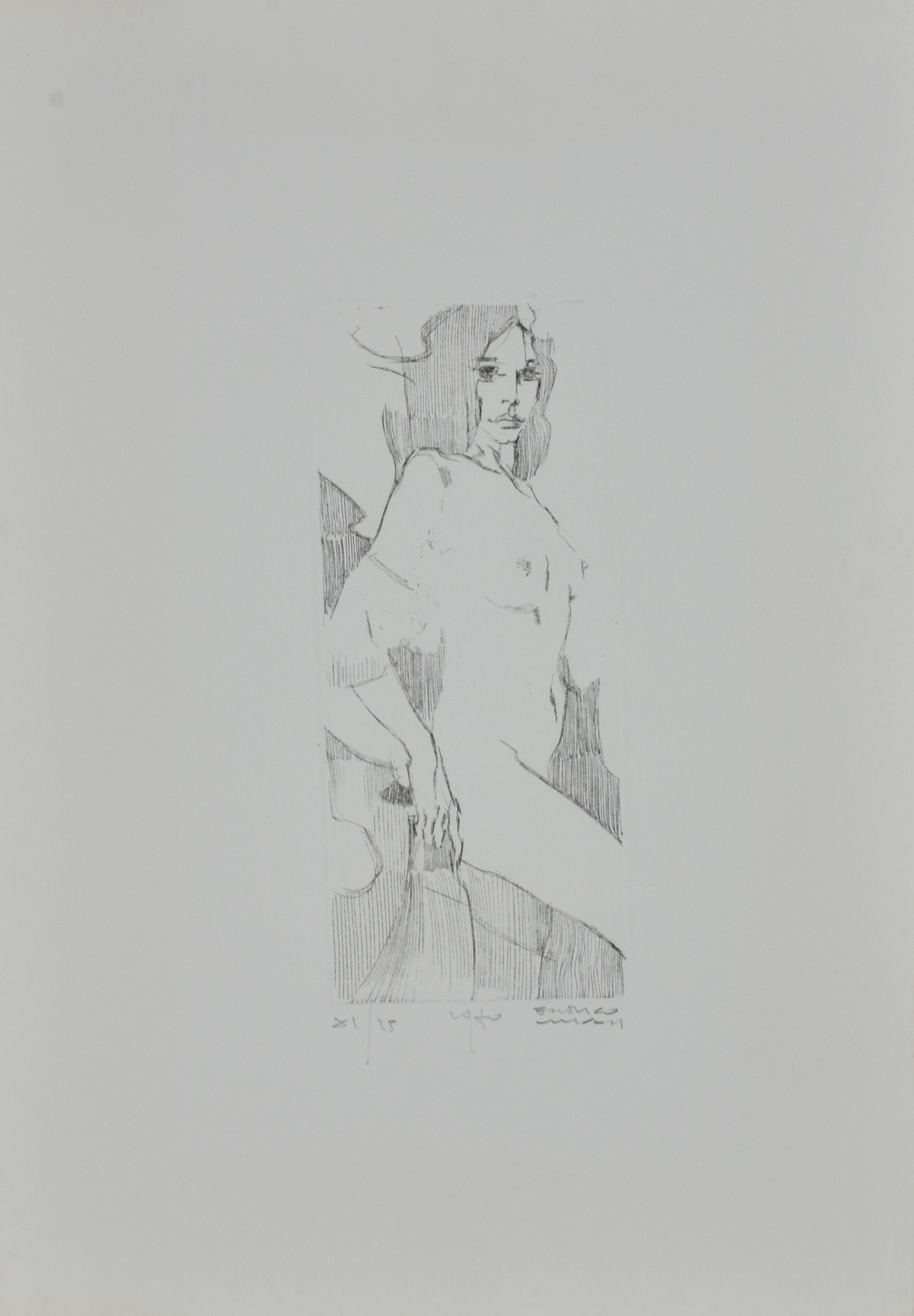 Enrico Villani NUDO DI FIANCO acquaforte su carta, cm 47,5x32,5 (lastra cm 24,5x10,5) esemplare XI su 25 sul fronte: firma e data eseguita nel 1970