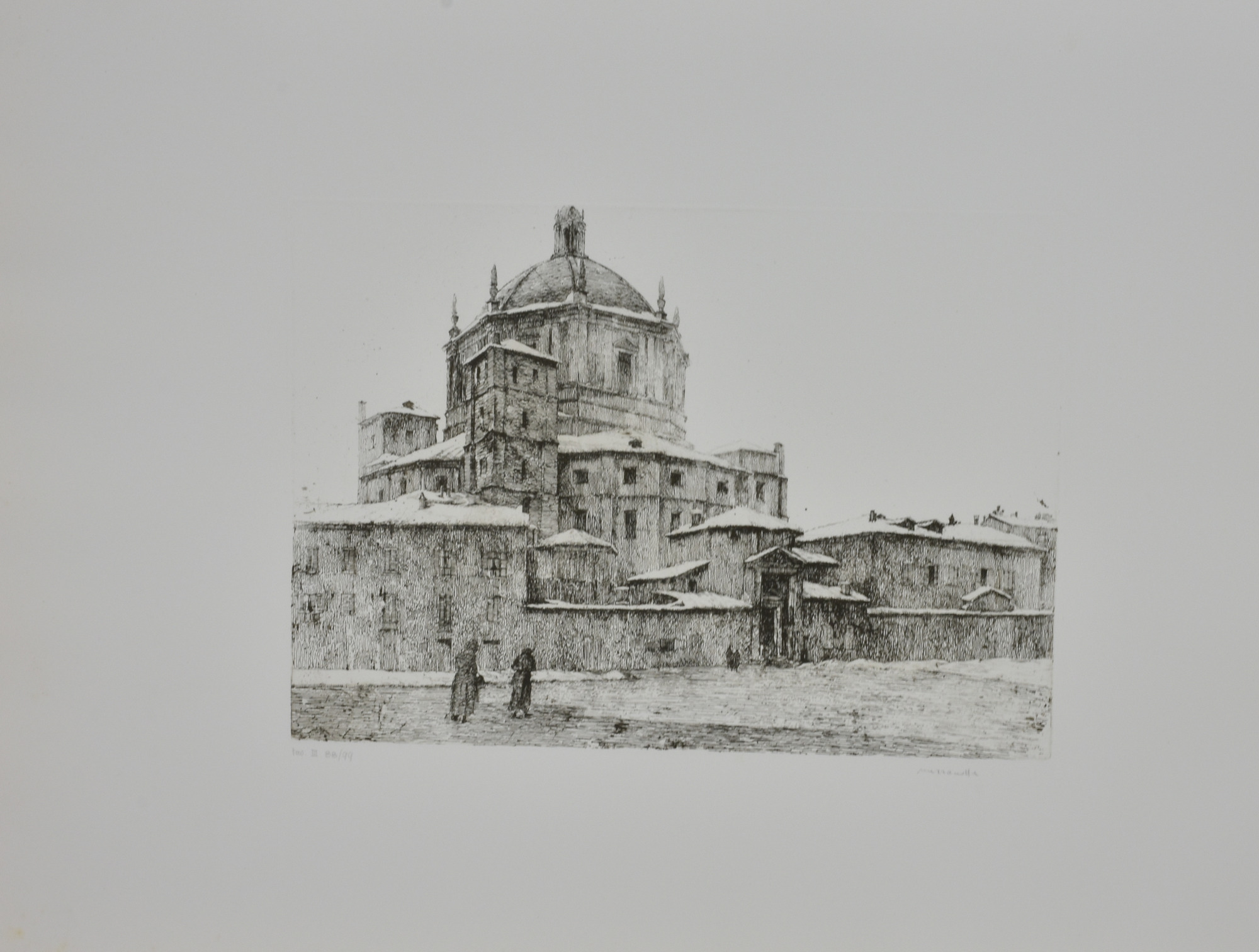 Paolo Mezzanotte SAN LORENZO acquaforte su carta, cm 50x70 (lastra cm 27x37,5) esemplare 88 di 99 sul fronte: firma