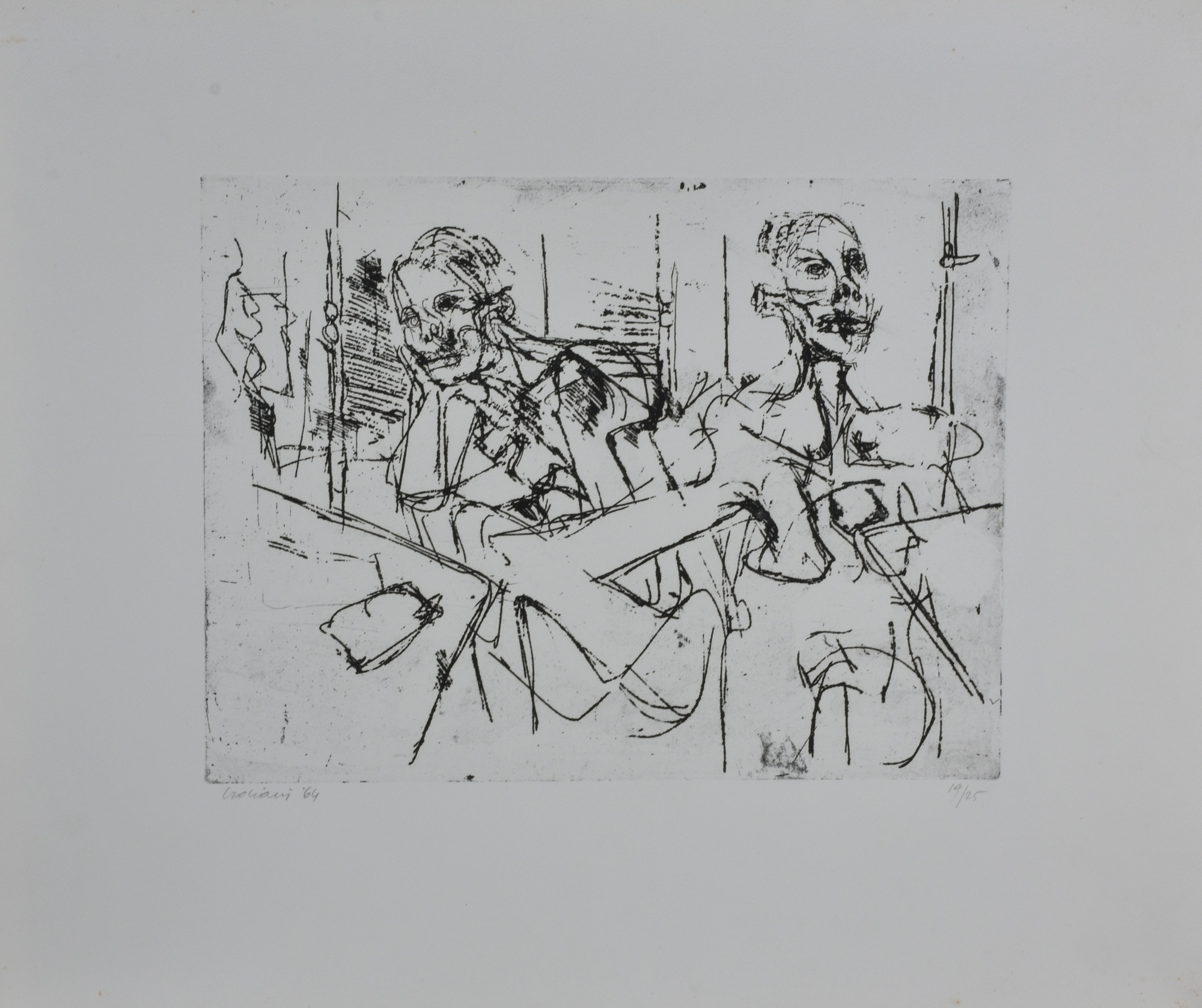 Crociani SENZA TITOLO acquaforte su carta, cm 60x50 (lastra cm 30x39) esemplare 19 su 25 sul fronte: firma e data eseguita nel 1964