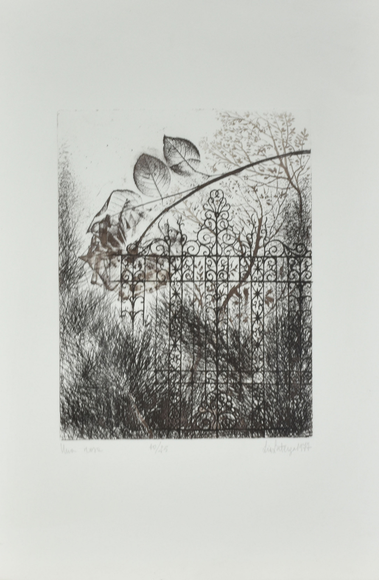 Lia Laterza UNA ROSA incisione su carta, cm 58x39,5 (lastra cm 32x24,5) esemplare 10 su 25 sul fronte: firma, titolo e data eseguita nel 1977