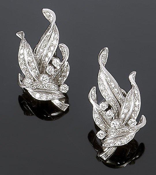 COPPIA DI ORECCHINI Coppia di orecchini in platino, a clips, a motivo...