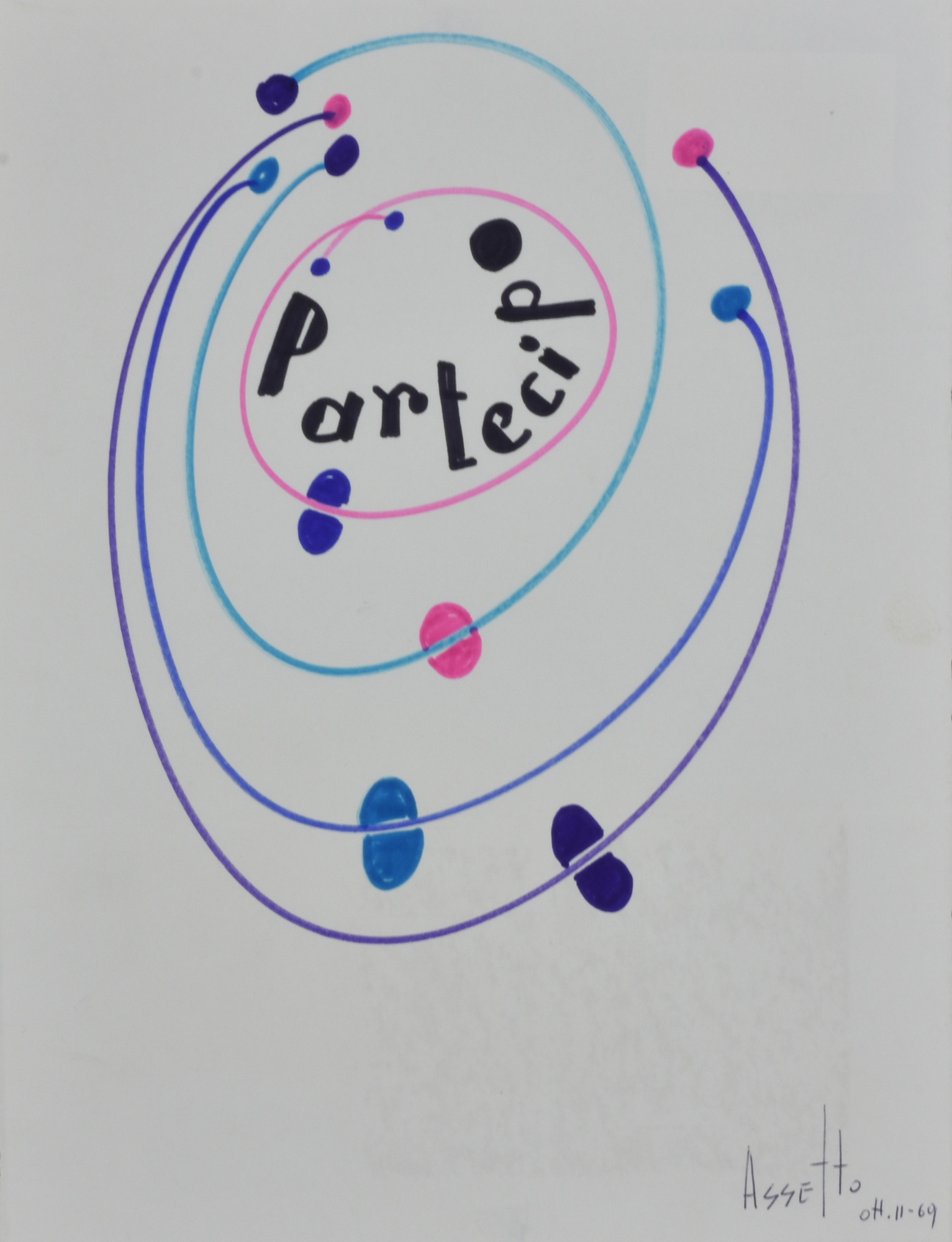 Assetto PARTECIPO pennarello su carta, cm 70x50 sul fronte: firma e data eseguito nel 1969