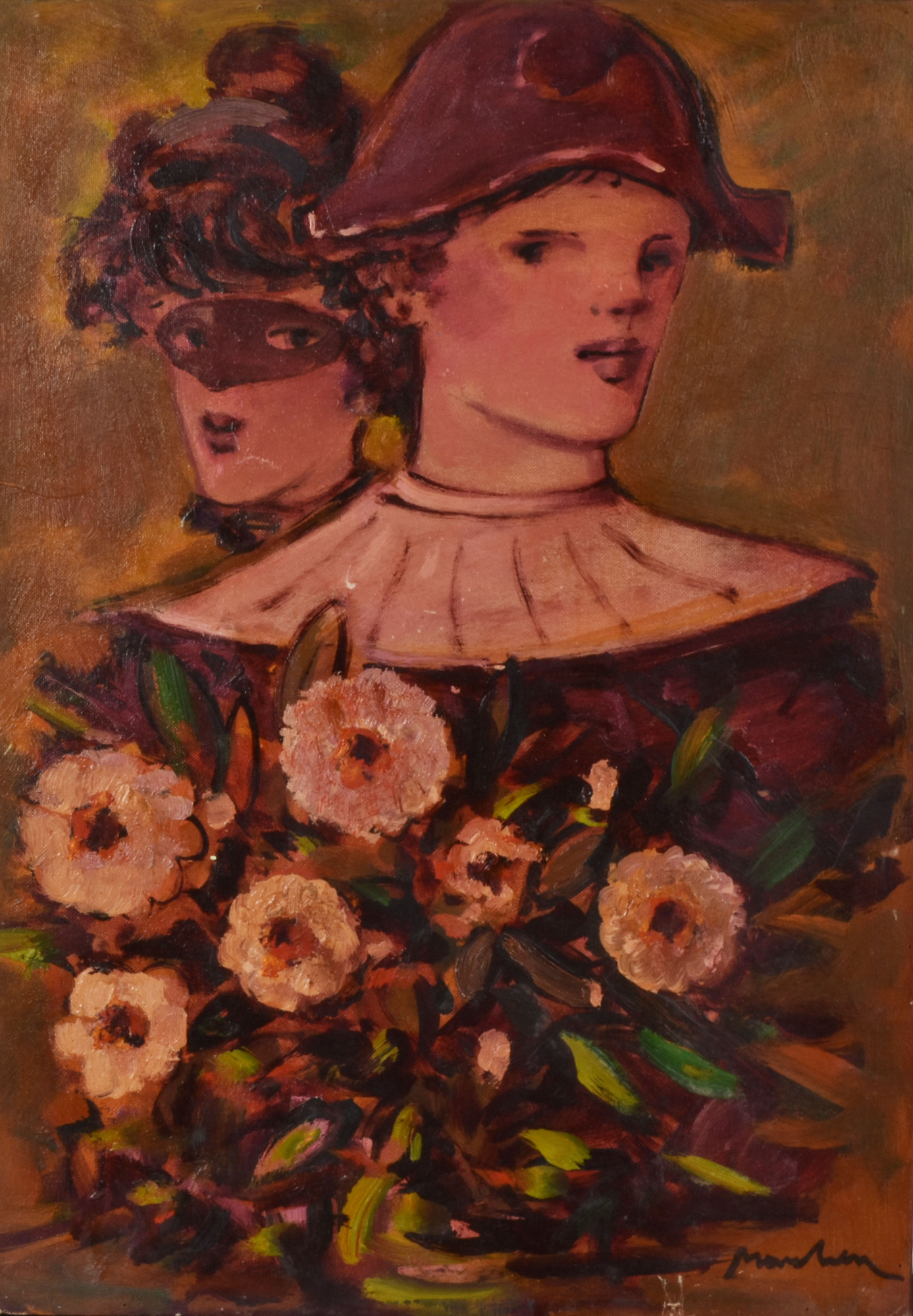 Ignoto MASCHERE olio su cartoncino telato, cm 50x35 sul fronte: firma sul retro: firma