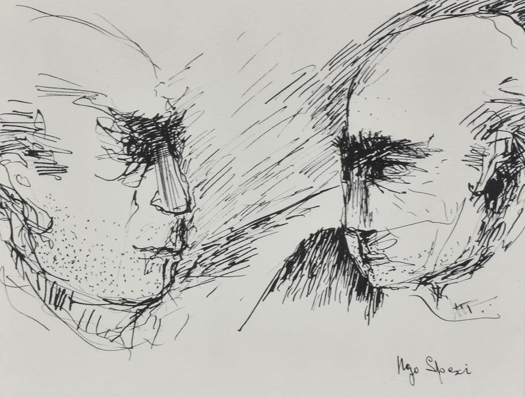 Ugo Spezi DUE VOLTI china su carta, cm 24x31 sul fronte: firma