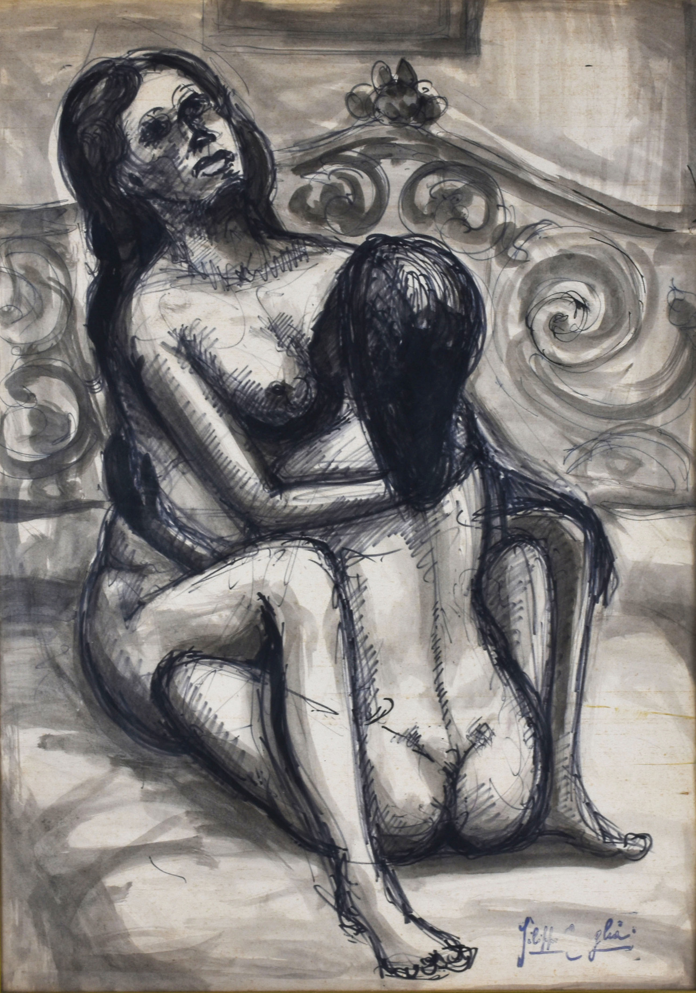 Filippo Quaglia NUDI tecnica mista su carta, cm 70x50 sul fronte: firma