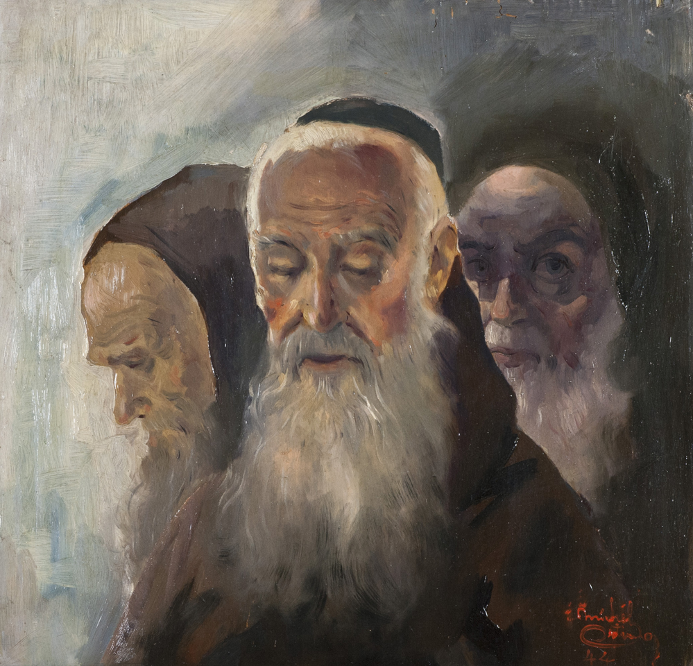 Michele Ortino Figure, 1944 Olio su tavola, cm. 55,5x57 La tavola presenta imperfezioni in alto. Firma e data in basso a destra. Sul verso: timbro "Rassegna d'Arte Internazionale I Grandi Maestri".