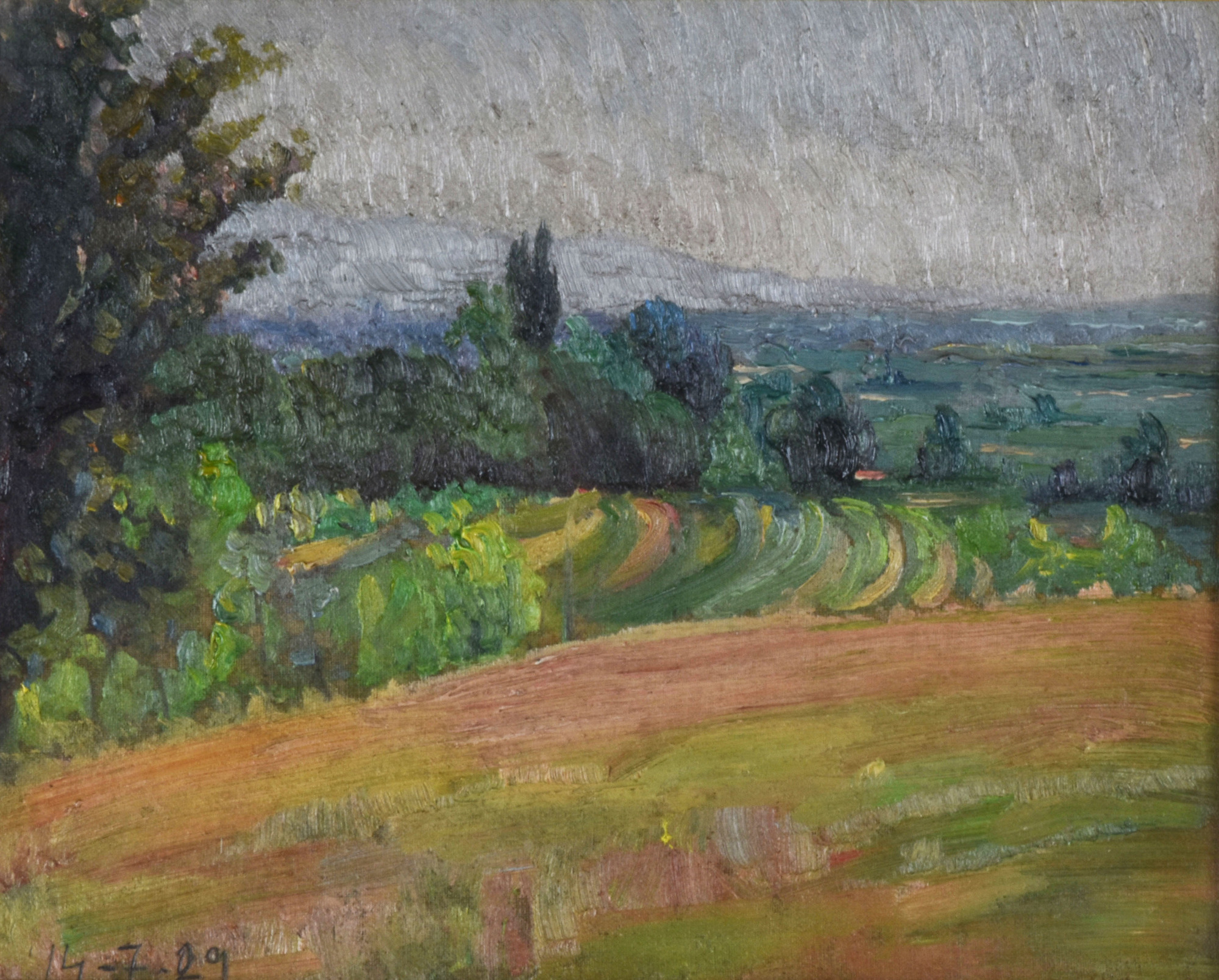 Camillo Rho SAN DAMIANO olio su cartone, cm 23x28 sul fronte: data eseguito nel 1929