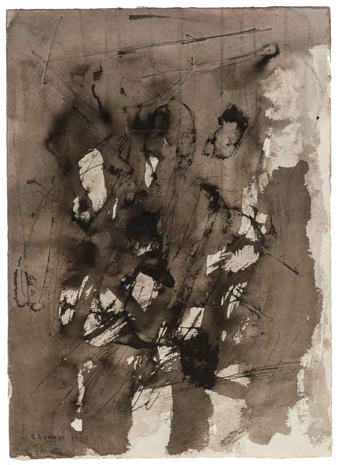 ENZO BRUNORI (1924 - 1993) Senza titolo 1963 Tecnica mista su carta applicata...