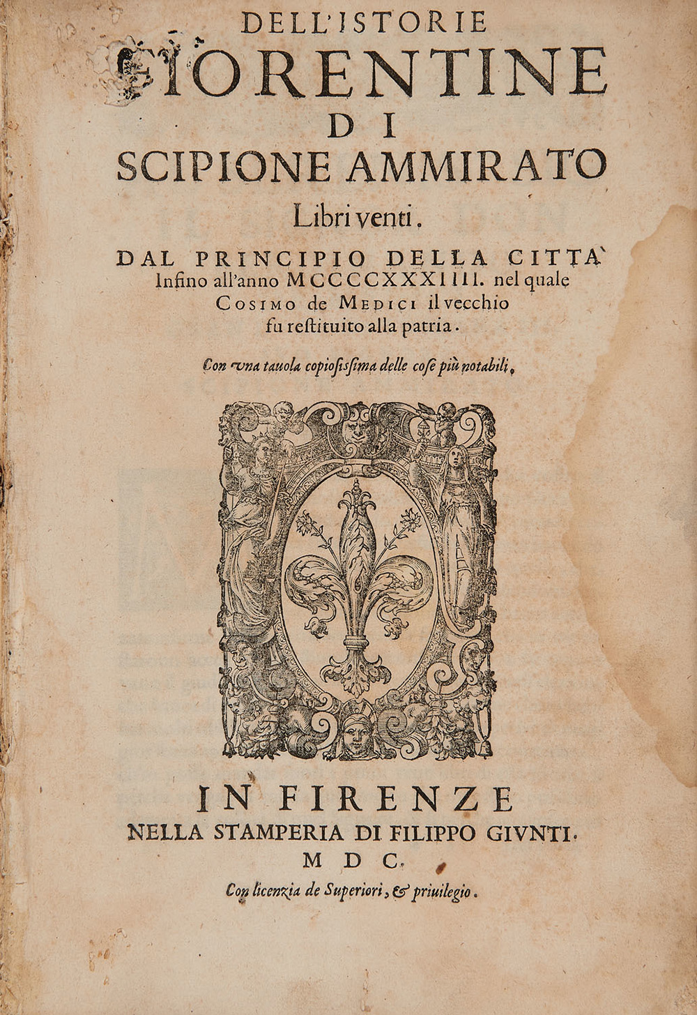 AMMIRATO, Scipione (1531-1601) - Dell'Istorie Fiorentine. Firenze: Filippo Giunti, 1600.