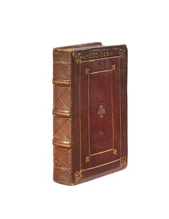 4 opere in un volume, 8vo (154 x 105mm). Ogni opera completa: presenti le ultime bianche nelle prime due opere, le prime tre opere con frontespizio entro elaborata cornice xilografica e la quarta opera con frontespizio stampato in rosso e nero e vignetta xilografica con ritratto dell'autore, in generale vignette xilografiche in fine e iniziali xilografiche (prima opera con frontespizio riparato nel margine inferiore con minuscole perdite che sfiorano la xilografia, in generale occasionali piccole macchie). Marocchino rosso veneziano coevo, decorato e titolato in oro, dorso in pannelli decorati a secco, taglio superiore con rimanenze di oro (sapientemente reindorsato, margini poco sfregati e piccola perdita alla parte superiore del dorso, dorso leggermente scolorito). Provenienza: Major Bryan Palmes (collezionista di libri; exlibris) - Sigillum horacii domicis de Oxford (etichetta) - "Paid £2.8 for this work at Sotheby's 1895" (iscrizione a matita) - Eduardo J. Bullrich (1895-1951?, collezionista di libri argentino la cui biblioteca venne venduta nel 1952; exlibris).