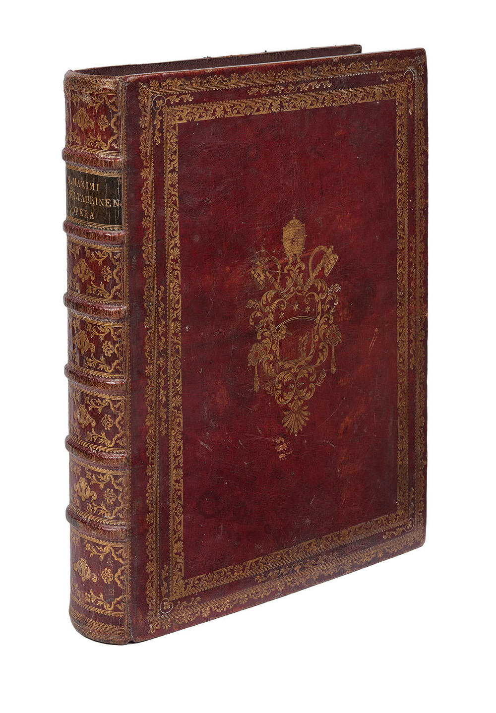 Ottima copia in legatura di Papa Pio VI in marocchino rosso delle opere di Santo Massimo, Vescovo di Torino.