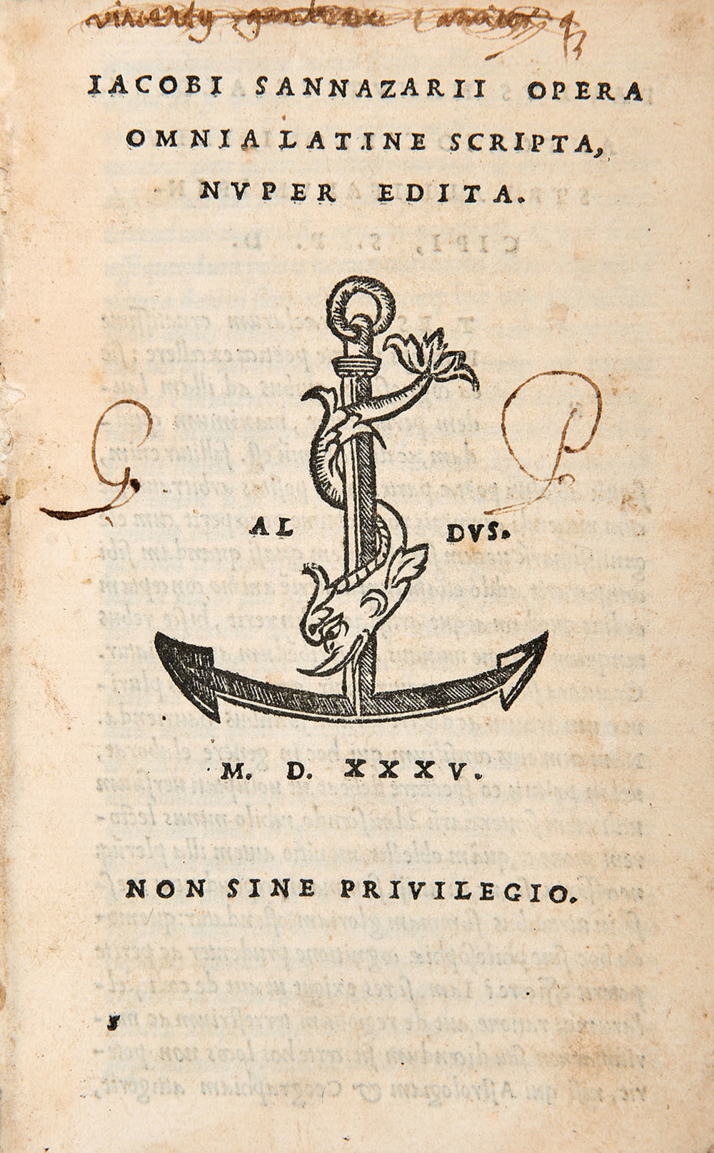 SANNAZARO, Giacomo (c. 1456-1530) - Opera omnia latinae scriptae nuper edita. Venice: Aldo Manuzio e eredi di Andrea Torresano, 1535.