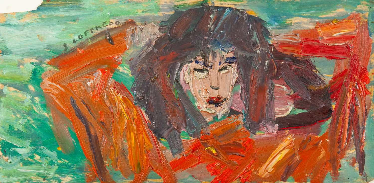 Silvio Loffredo Figura Olio su tavola irregolare, cm. 31x61,5 Firmato in alto a sinistra. Sul verso: firma. Autentica dell'Artista su foto.