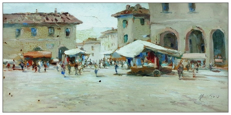 RUTILIO MUTI Vicchio di Mugello 1904 – Vicchio di Mugello 1995 Vicchio Mugello Olio su tavola 18 x 37. Firma in b. a d., titolo sul verso. base: 100