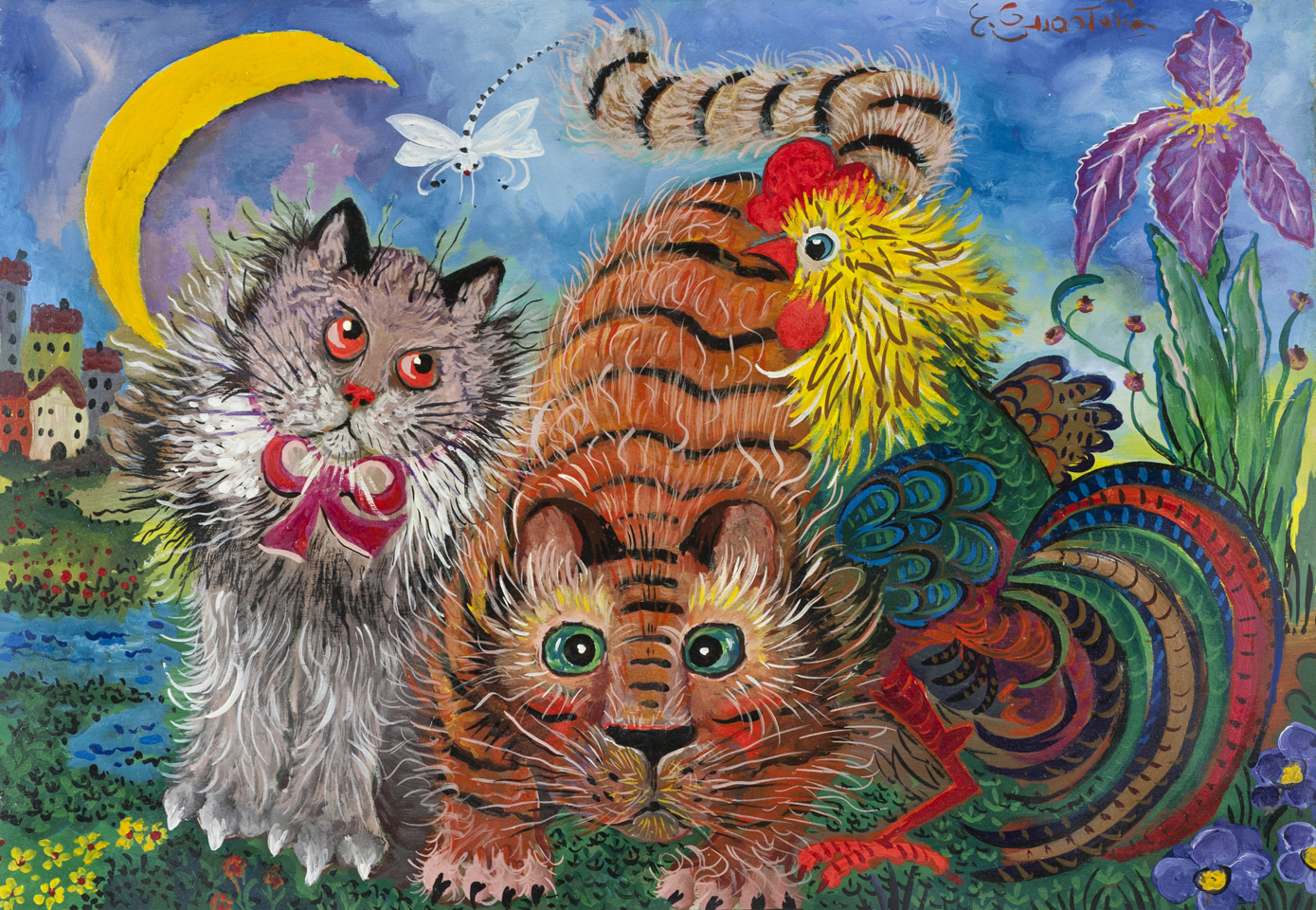 Elena Guastalla Animali Olio su tavola, cm. 70x100 Firmato in alto a destra.
