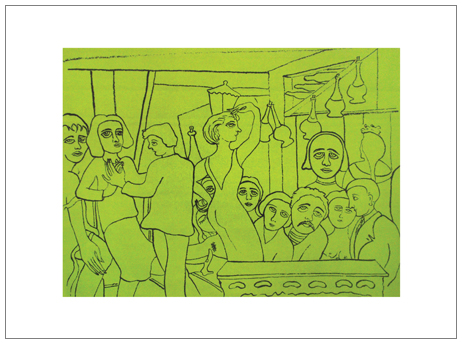 GIUSEPPE VIVIANI Agnano Pisano 1898 – Pisa 1965 Tabarin 1964 Litografia a 2 colori es. prova di stampa. Firma in b. a d. (56,6 x 76,5 foglio – 42 x 57,6 lito.) Editori: Vanni Scheiwiller, Milano – Paolo Belforte, Livorno. Questo esemplare è una prova di stampa, variante di colore, con fondo verde scuro. Pubbl.: “Giuseppe Viviani Catalogo Generale” a cura di Silvio Guarasci, Editore Saletta d’Arte Viviani s.a.s. Pisa, Stampatore Pacini S.p.a. Pisa, ottobre 2015, p.31. base: A OFFERTA