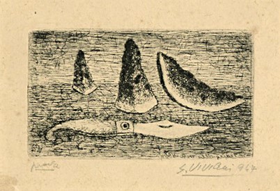 GIUSEPPE VIVIANI Agnano Pisano 1898 – Pisa 1965 Cocomero e coltello 1947 Acquaforte su rame acciaiato es. prova. Firma in b. a d. + sulla lastra in b. a s. GV (al rovescio) + in b. a d. “alla mia Naby”. (7,3 x 10 foglio – 4,1 x 6,8 inc.) Tiratura: 325 es. numerati e firmati + 2 es. firmati (A e B) + 10 es. prova firmati su vari tipi di carta. Lastra biffata. L’opera fa parte della cartellina “All’Insegna del Pesce d’Oro”, contenente 6 incisioni di Viviani con presentazione di Libero De Libero, a cura di Giovanni Scheiwiller. Pubbl.: “Giuseppe Viviani Catalogo Generale” a cura di Silvio Guarasci, Editore Saletta d’Arte Viviani s.a.s. Pisa, Stampatore Pacini S.p.a., Pisa, ottobre 2015, p.74. base: A OFFERTA