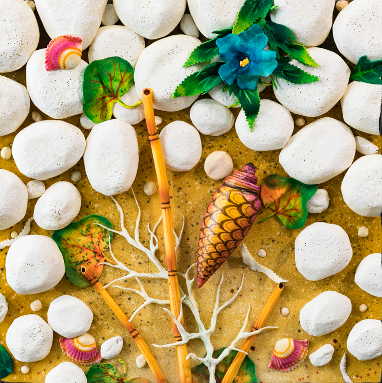 PIERO GILARDI (1942)Conus e ibisco bluPoliuretano espansocm 50x50x12Firma e...