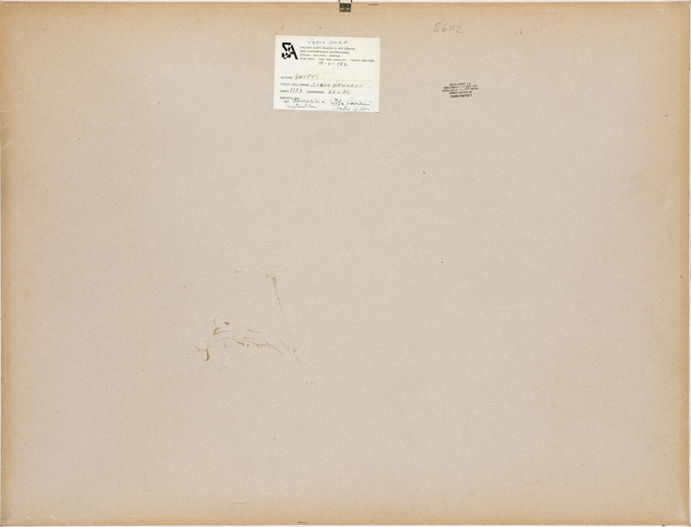 Etichetta e firma per garanzia a cura della Galleria d'Arte Sansoni di Ada Sansoni (PV) al retro del cartone protettivo