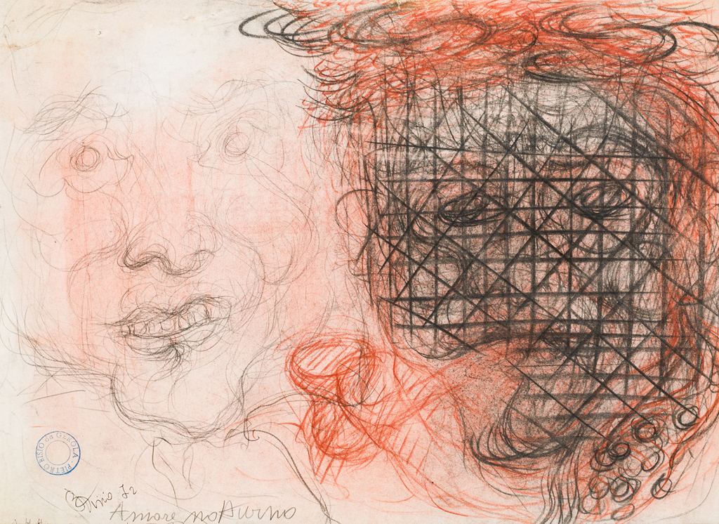 PIETRO BISIO (1932)Amore notturno, 1972Tecnica mista su cartacm 35x46Firma,...