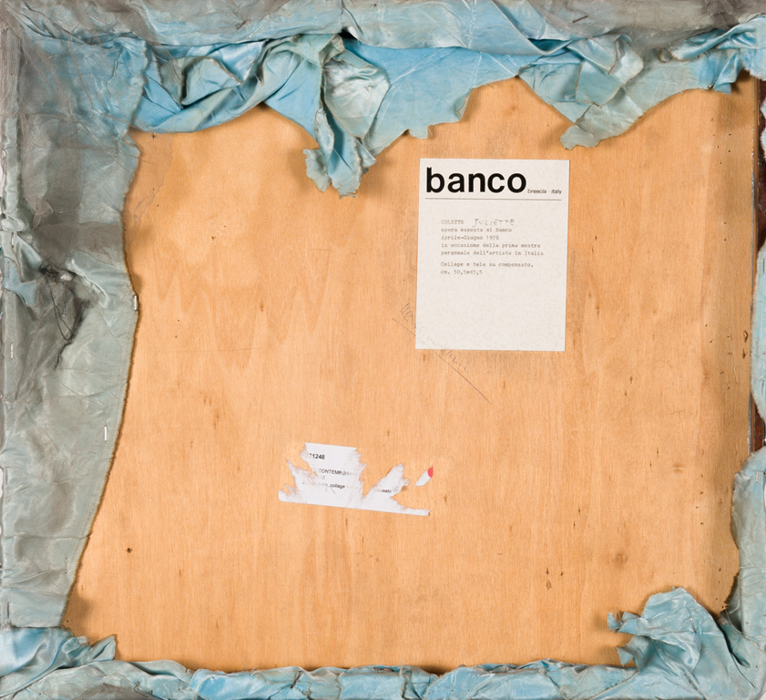 Etichetta della Galleria Banco (BS) al retro