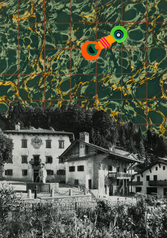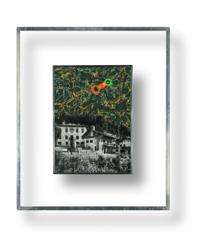 Tecnica mista e collage su base fotografica riportata su tavola